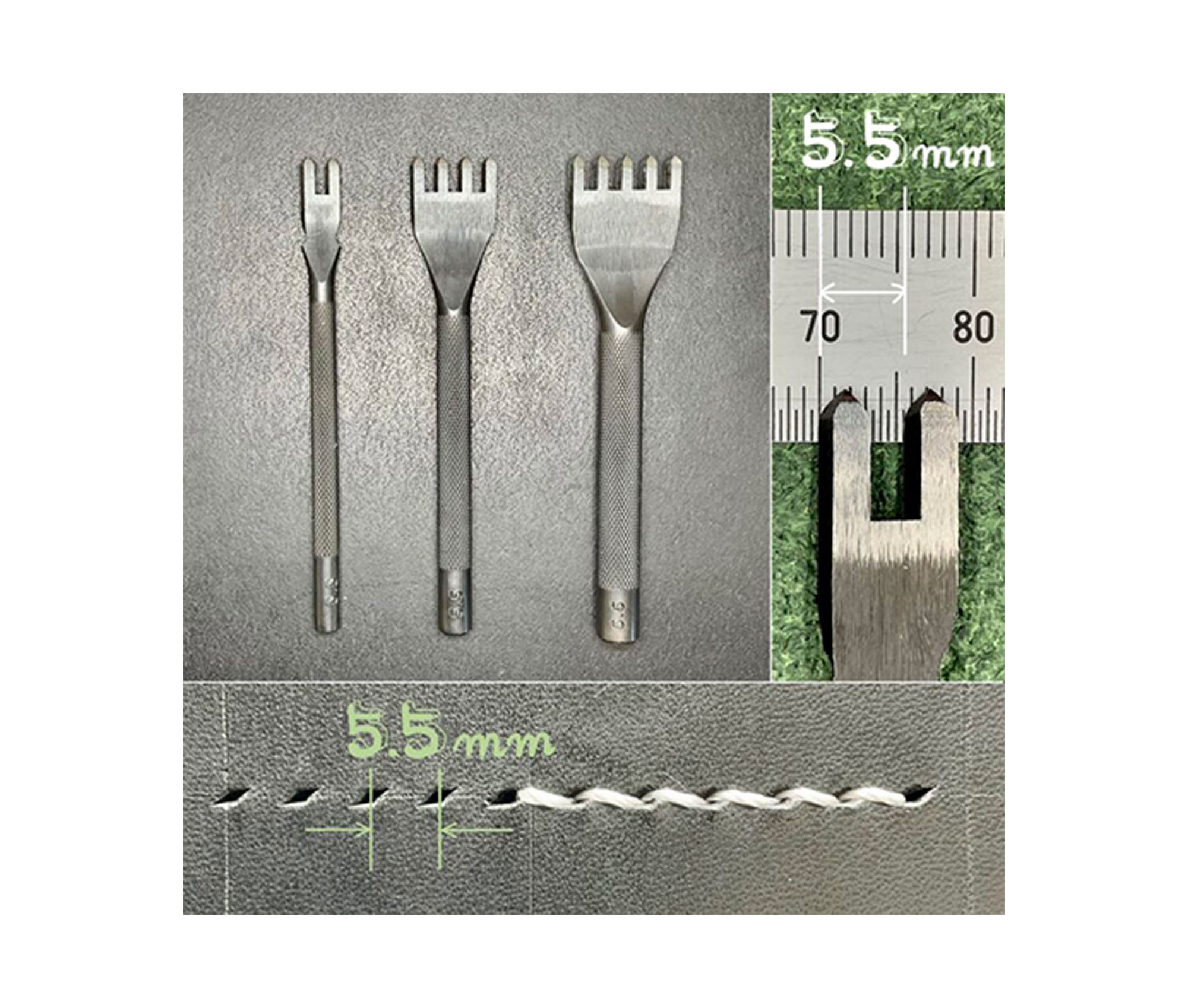 The diamond hole punch are used to mark stitches on leather in order to obtain an even seam.
