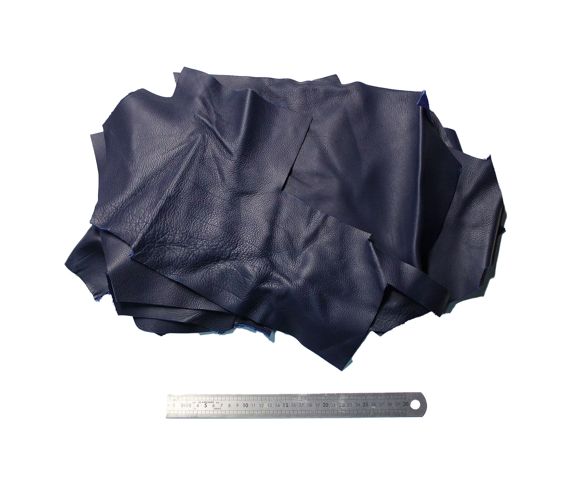 1 kilogram of calf nappa leather scrap 2nd choice - natural grain - blue navy