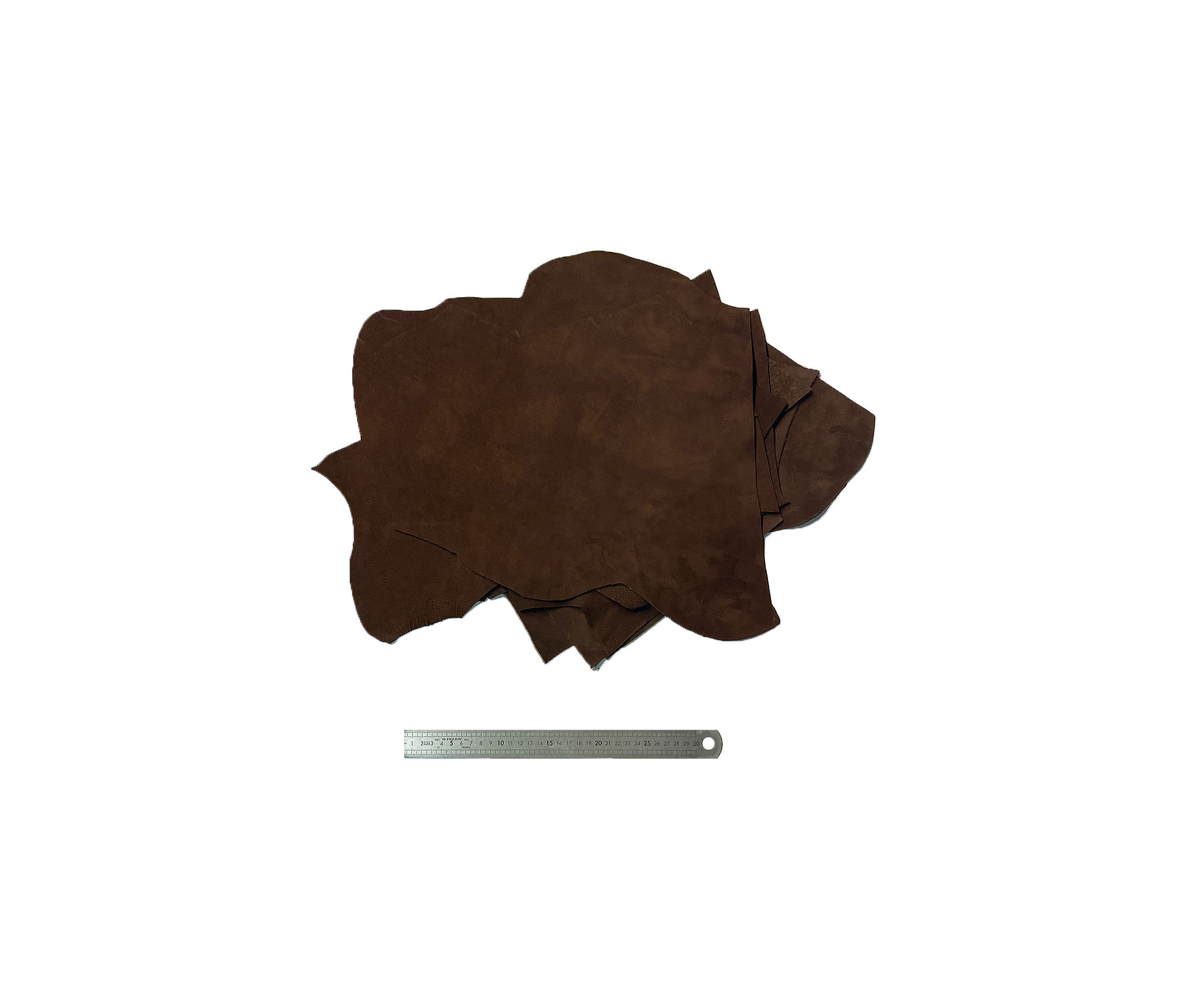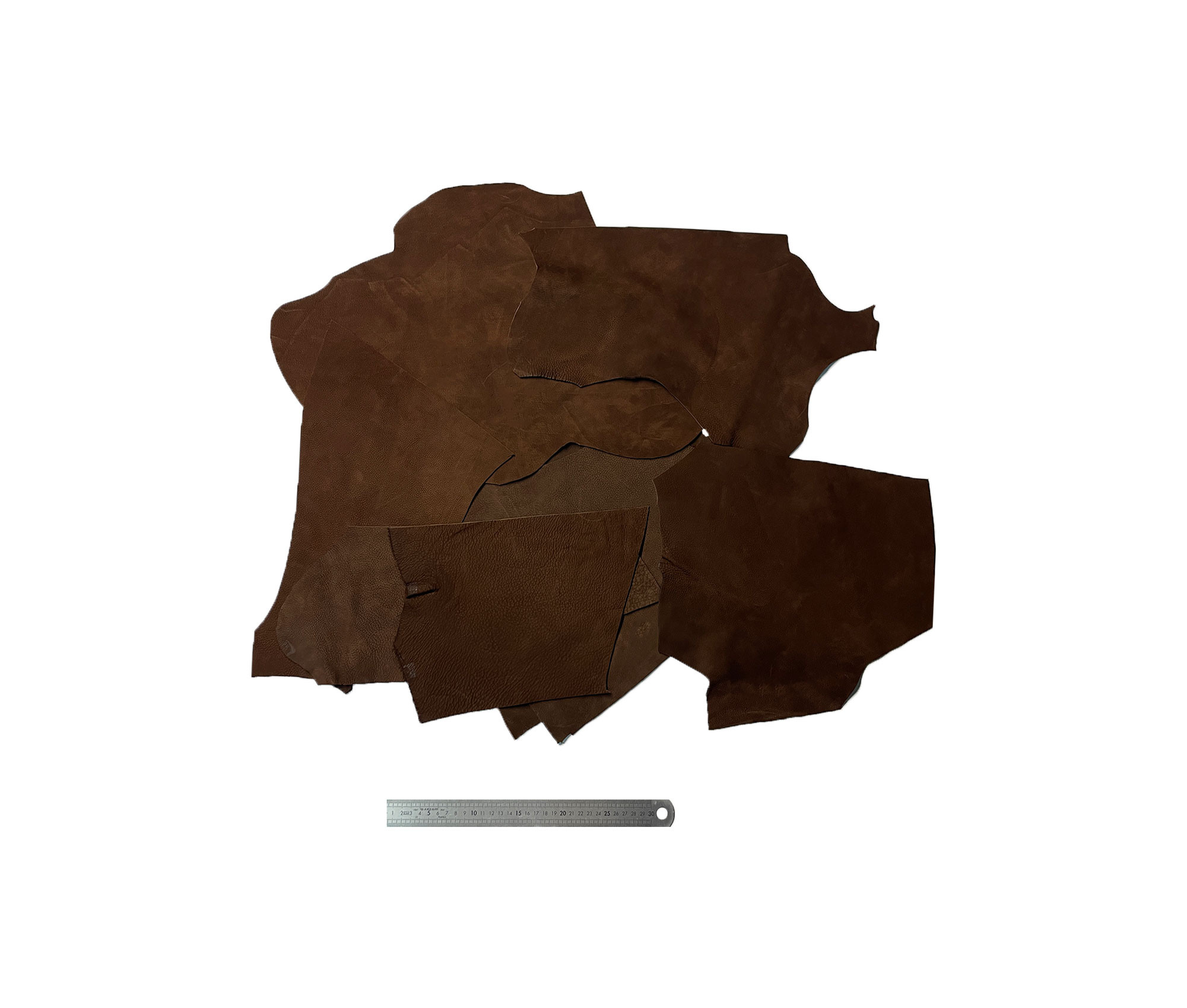 1 kilogram of cowhide leather's scraps - nubuck - soft touch - chestnut