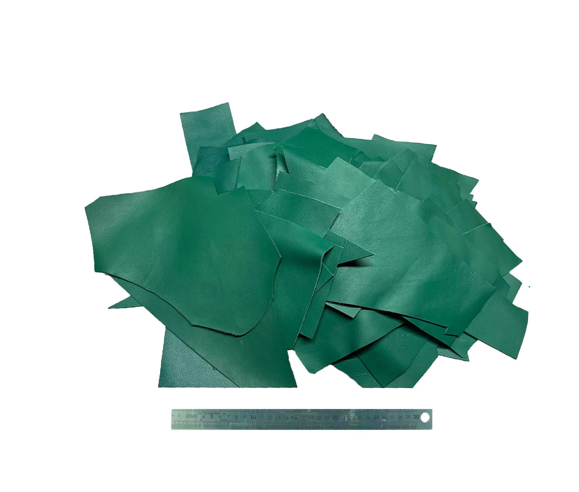 mall size leather scraps green color, ideal for making crafts, small leather goods, repairs etc.