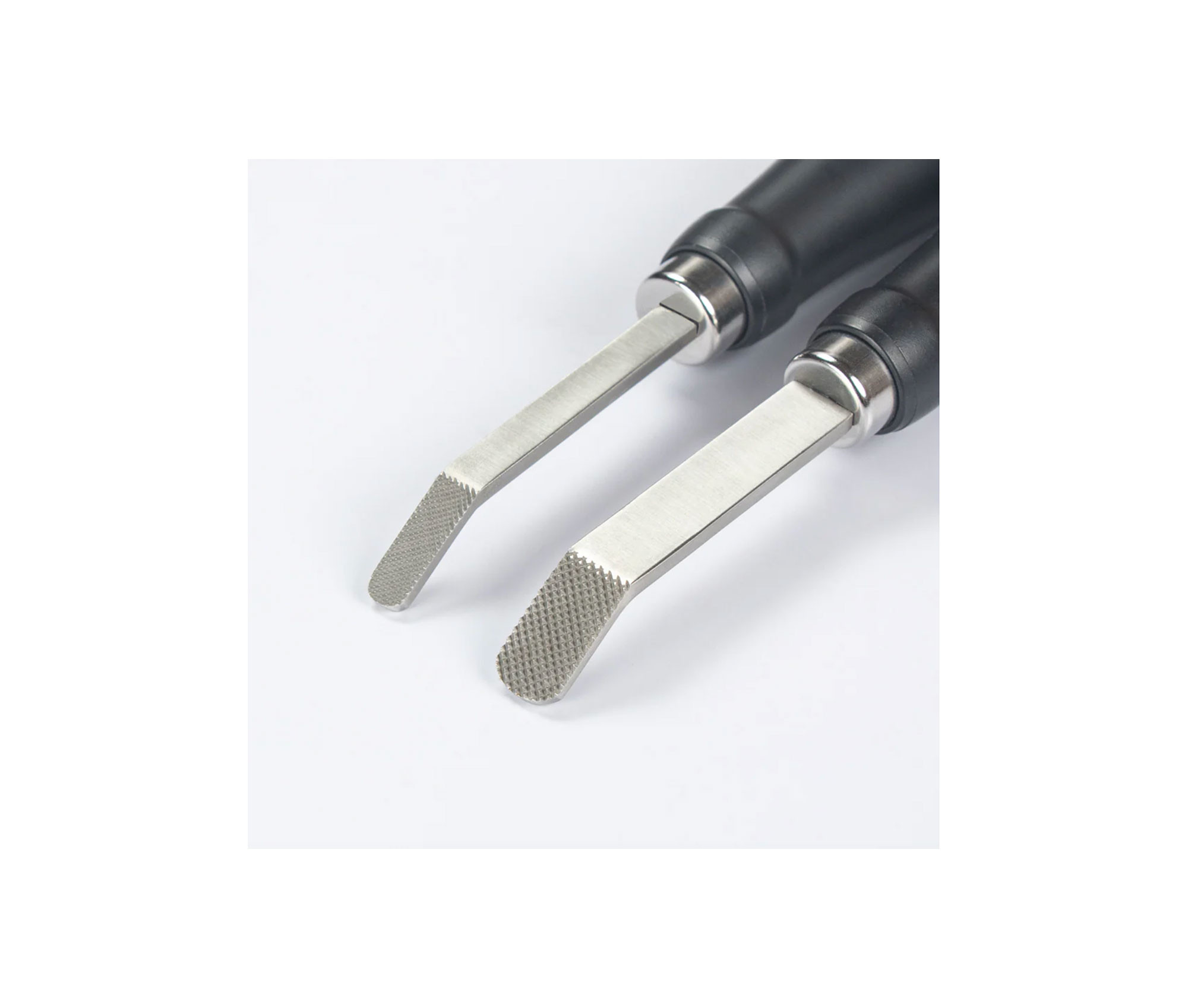 The Stainless roughing tool is a file specially designed for working with leather. It has been designed to remove material from the edges of leather. The aim is to facilitate adhesion when gluing your pieces. The ends of the stainless steel files have a grid pattern.
