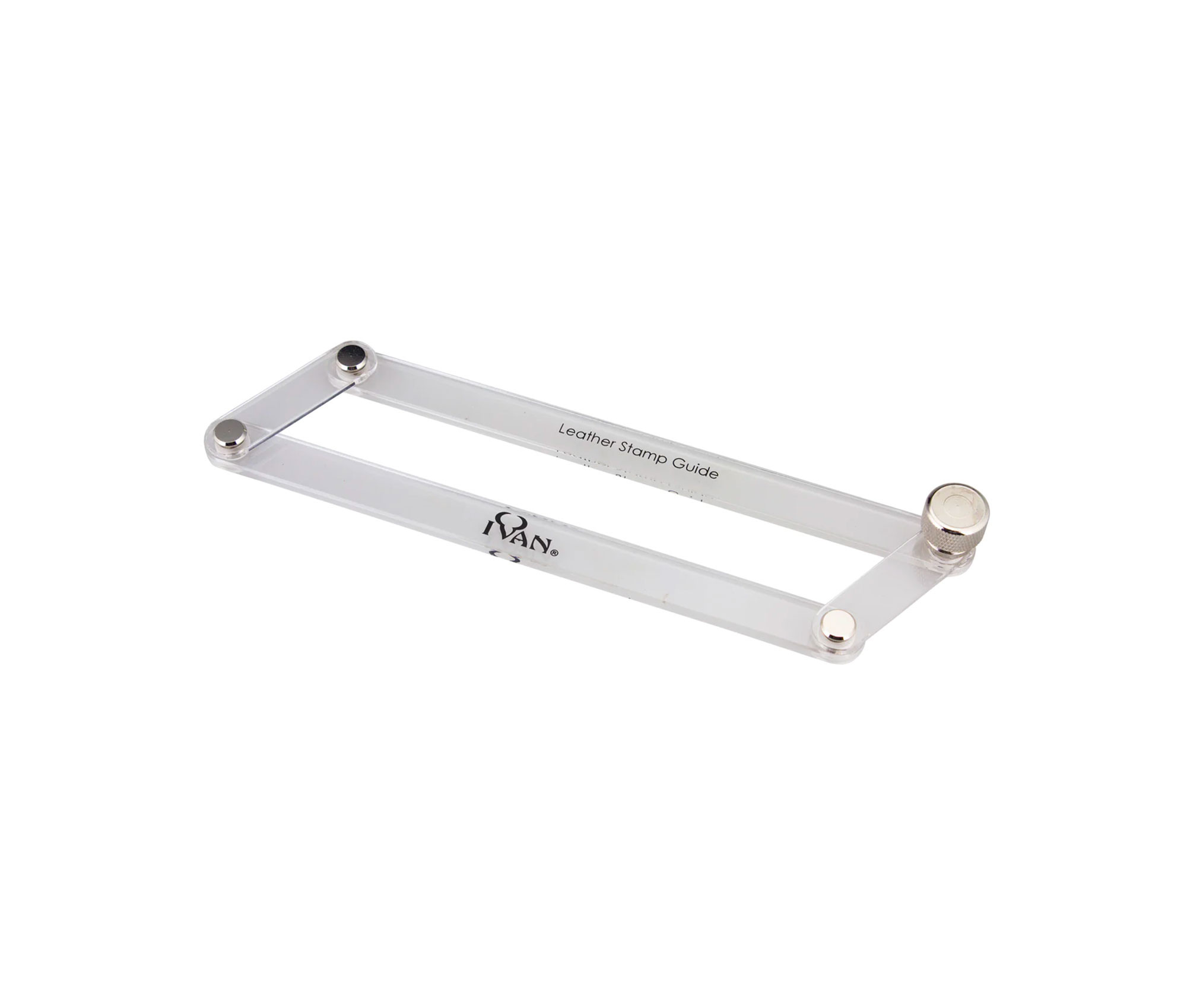 This transparent acrylic stamp guide is the ideal tool for leather artisans and creators who want to align their alphabet and 3D stamps with perfect precision. Thanks to its adjustable knob, you can easily set the spacing to fit your different stamps, whether they are alphabet, numeric, or pattern designs.