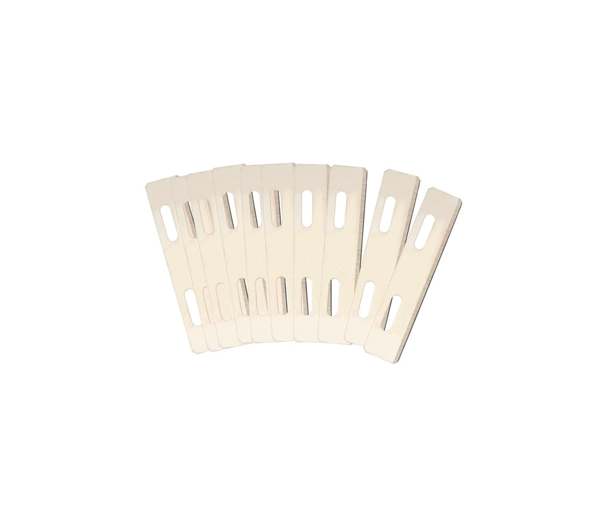 These stainless steel blades are very useful for removing material at specific locations. Sell by ten blades